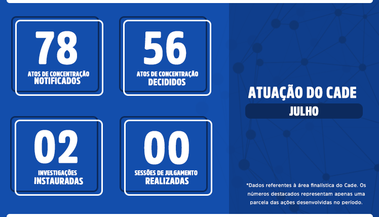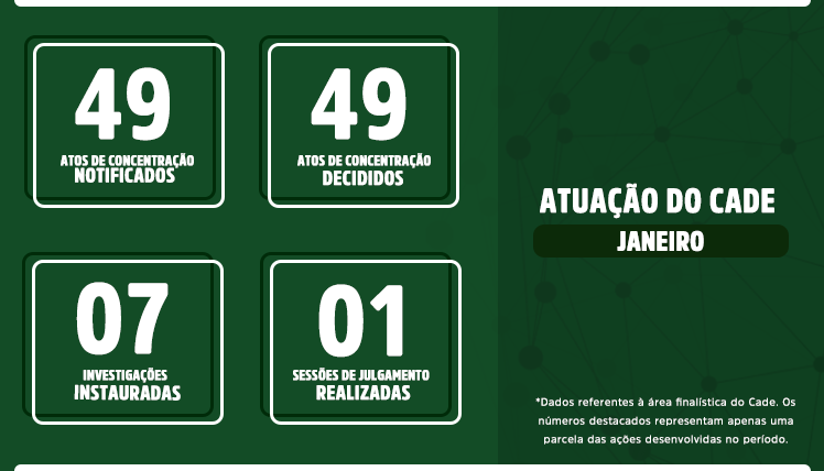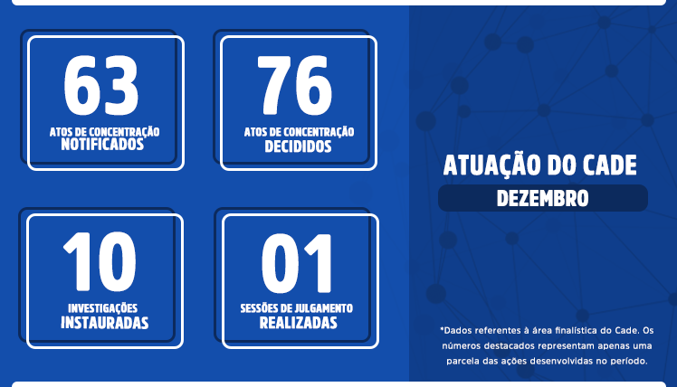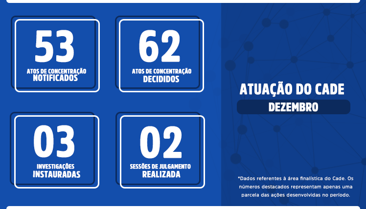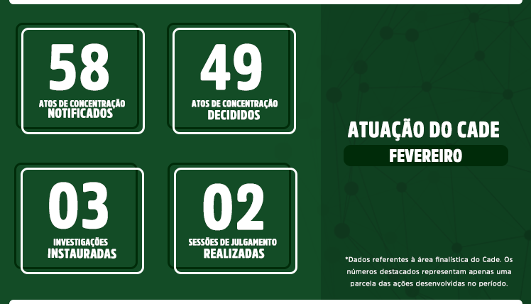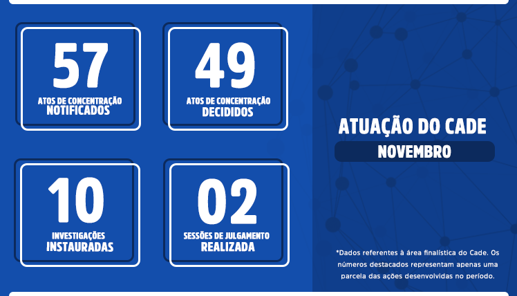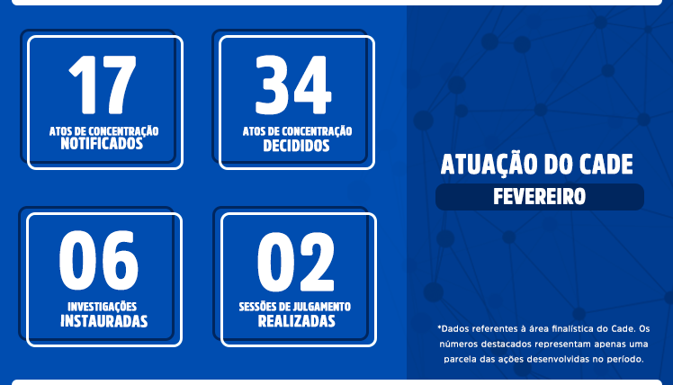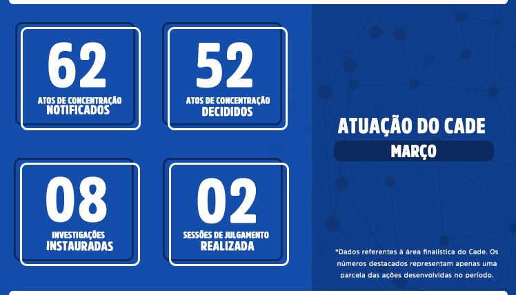 * Os dados relacionados nesta página se referem à atuação do Cade durante a pandemia do novo coronavírus. Por isso, os números são apresentados a partir do mês de março de 2020.
