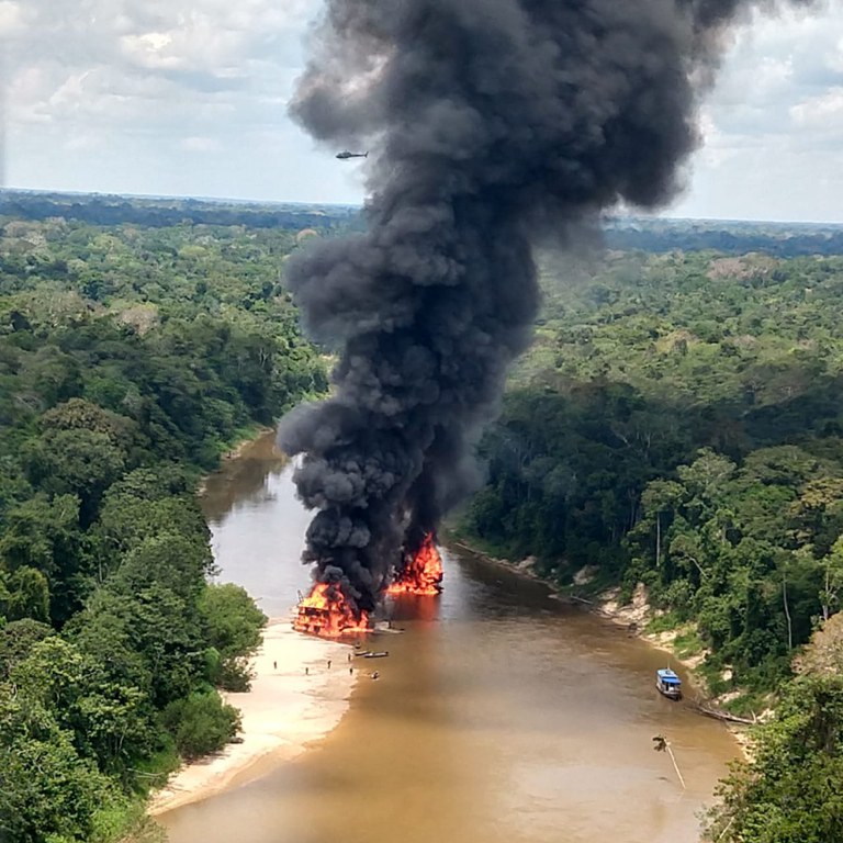 PF participa de operação que resultou na destruição de 60 balsas de extração ilegal de ouro