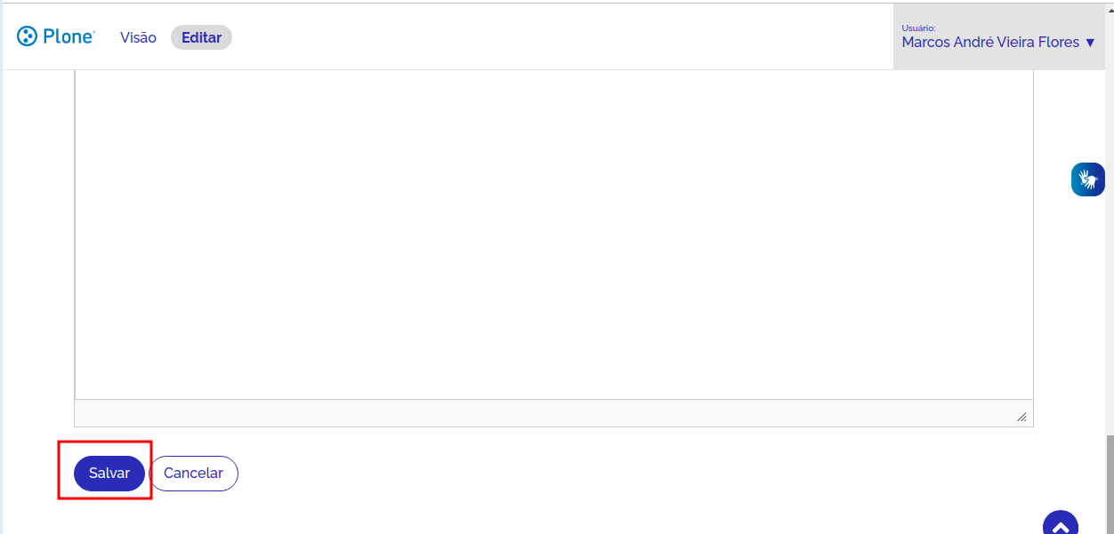 Após fazer o login para a edição do plone, na página inicial do gov.br, clique em "conteúdo" no canto superior esquerdo da sua tela.