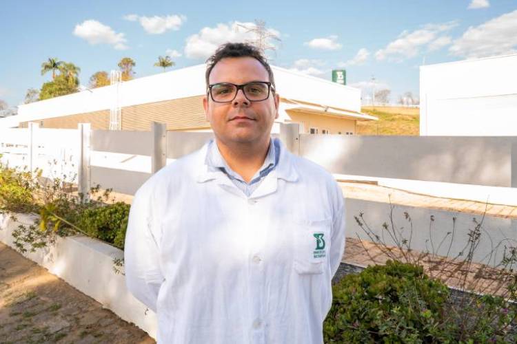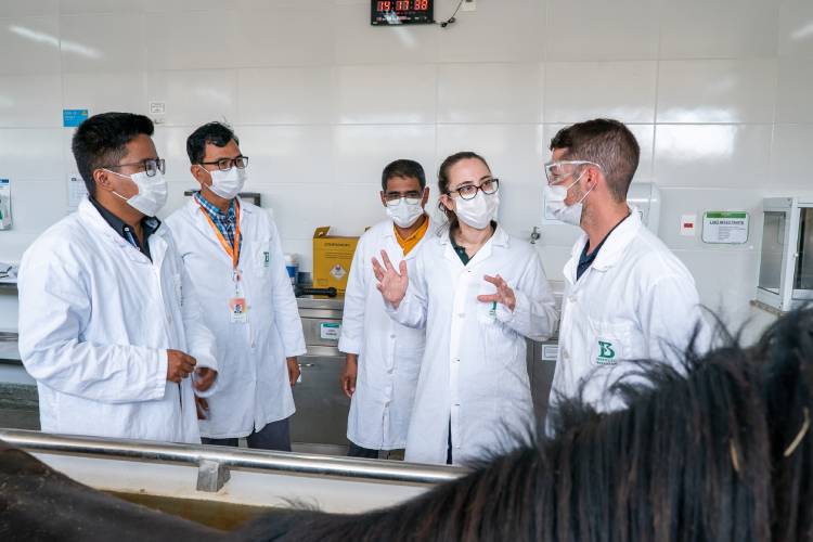 O gerente de produção de Obtenção de Soros Hiperimunes (OPH) do Butantan, Gustavo Perrotti, recebeu a delegação na Fazenda São Joaquim