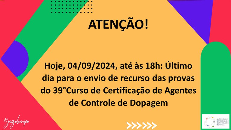 Último dia para o envio de recurso das provas do 39°Curso de Certificação de Agentes de Controle de Dopagem