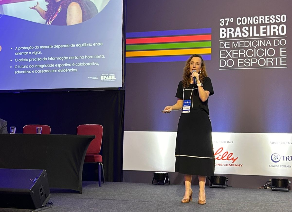 No último dia 21 de novembro de 2025, a Autoridade Brasileira de Controle de Dopagem (ABCD), representada pela Coordenadora-Geral de Educação, Ana Bonetti, participou do 37º Congresso Brasileiro de Medicina do Exercício e do Esporte, com a palestra “ABCD e o Controle de Dopagem no Esporte: Educação e Fiscalização”.