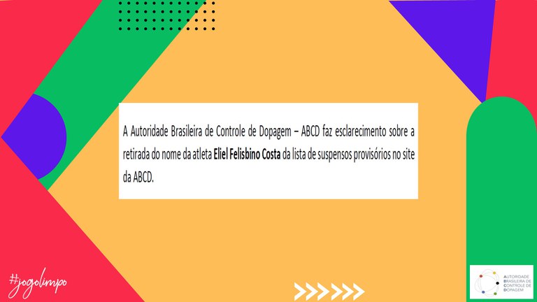 A Autoridade Brasileira de Controle de Dopagem – ABCD faz esclarecimento sobre a