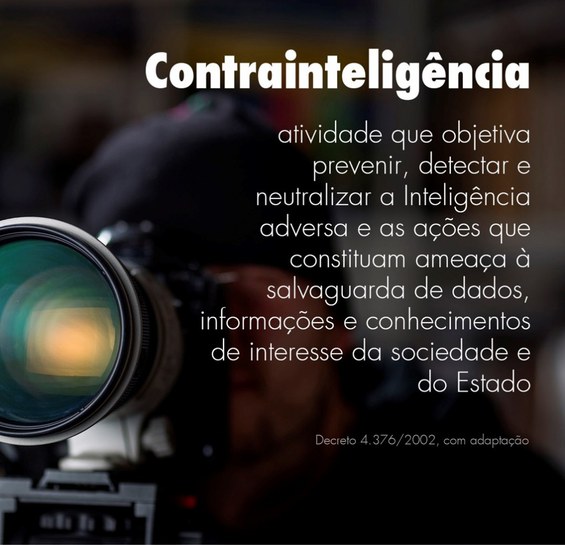 A atividade de Contrainteligência conduzida pela ABIN desenvolve trabalho de obtenção e análise de dados para detectar e neutralizar ações de espionagem contra interesses do país e avaliar as ameaças cibernéticas aos interesses nacionais.