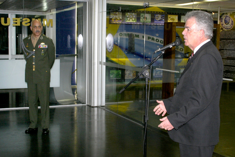 Os então subchefe-executivo do GSI/PR (General Wellington Fonseca) e diretor-geral da ABIN (Márcio Paulo Buzanelli), na inauguração do Museu da Inteligência, em 2006.