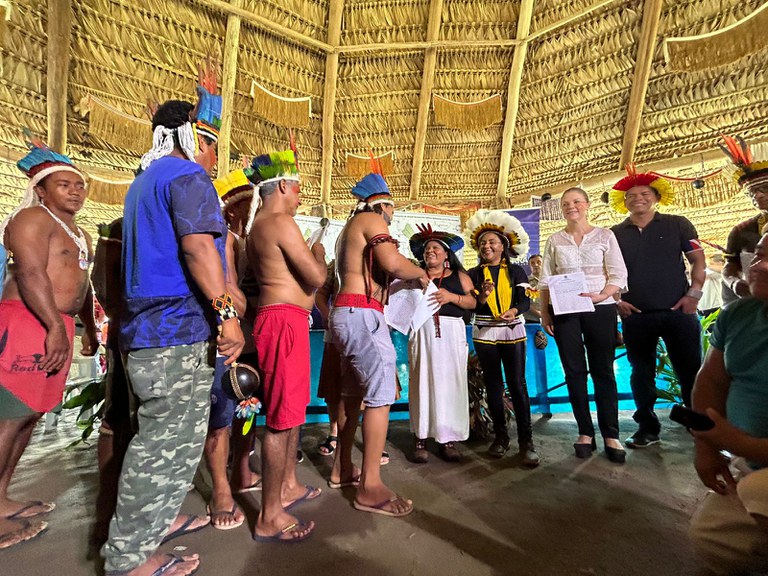 Ministra dos Povos Indígenas entrega certificado na aldeia central da Terra Indígena Alto Rio Guamá