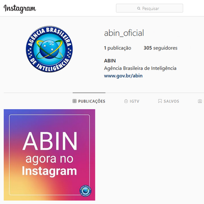 Além do recém-lançado Instagram, a ABIN mantém página no Facebook , na qual também são publicadas notícias e conteúdos institucionais.