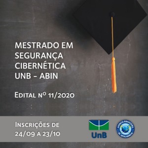 A Agência Brasileira de Inteligência (ABIN), por meio da Escola de Inteligência (Esint), em parceria com a Universidade de Brasília (UnB), lança edital com 33 vagas para o Mestrado Profissional em Segurança Cibernética. O edital encontra-se disponível no endereço https://ppee.unb.br/?page_id=1473 .