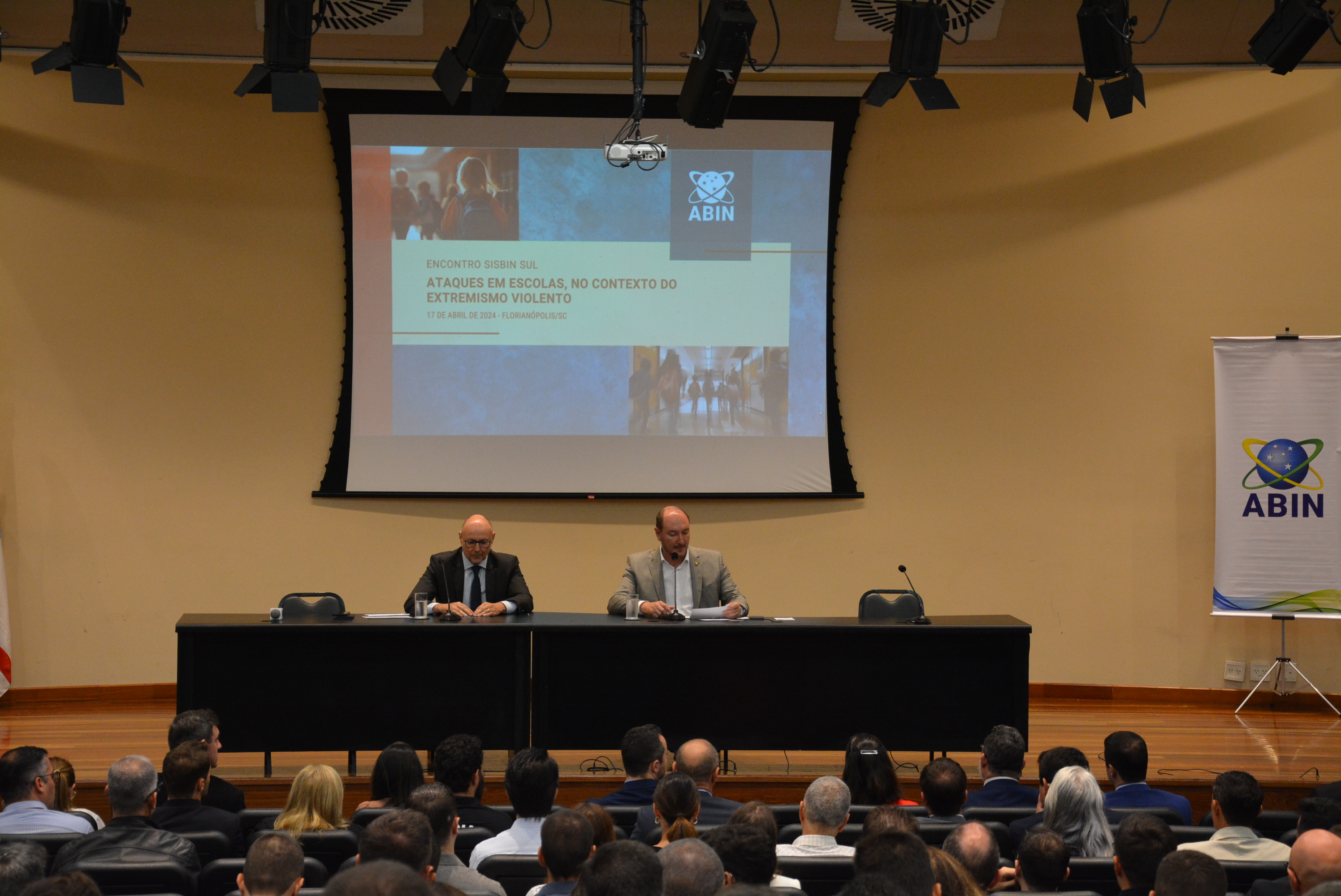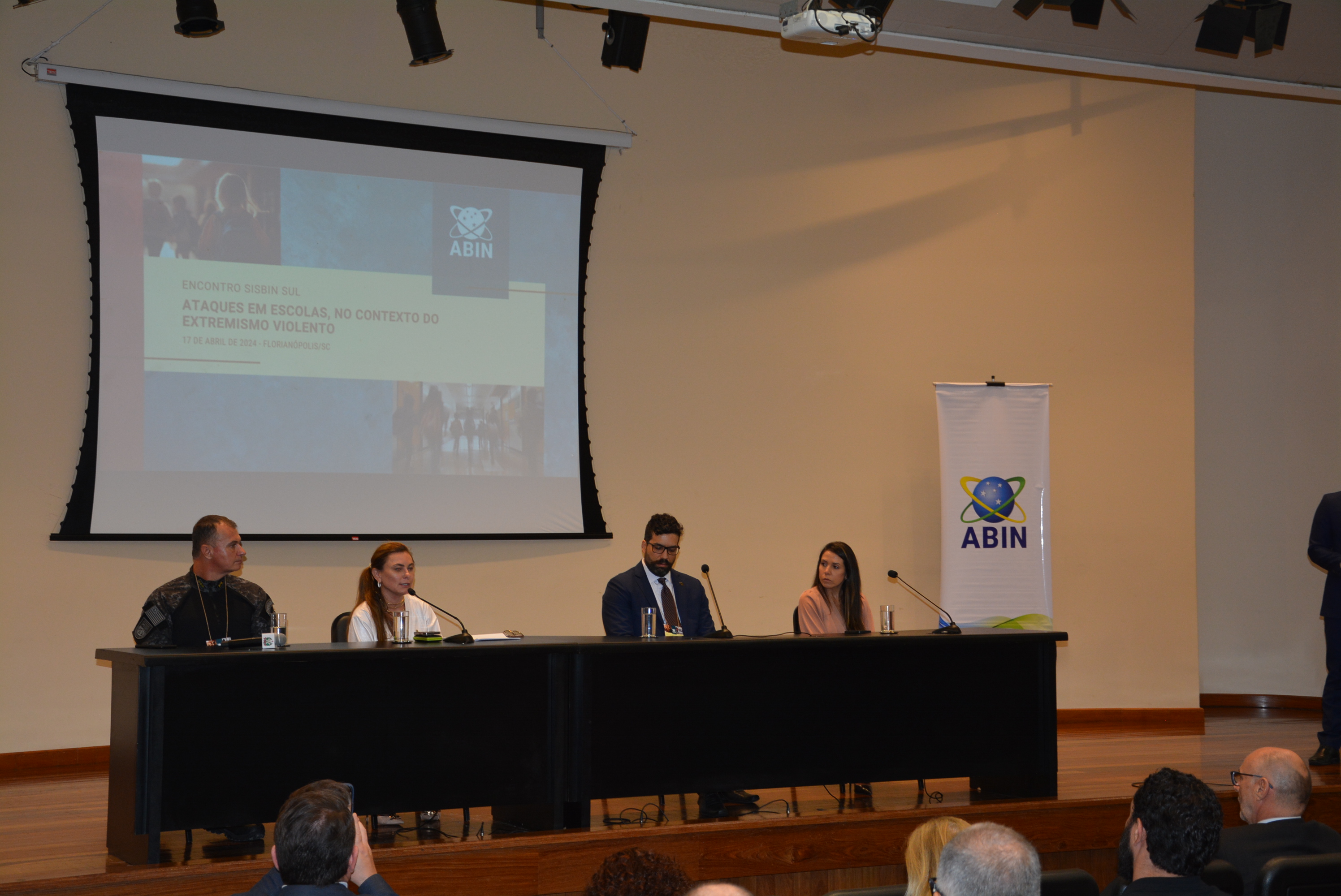 Com o tema “Ataques em escolas, no contexto do extremismo violento”, a Agência Brasileira de Inteligência (ABIN) reuniu representantes do Sistema Brasileiro de Inteligência (Sisbin) da região Sul na Assembleia Legislativa de Santa Catarina (Alesc) para debater ações estaduais e o papel da Inteligência diante do fenômeno. O público, de mais de 250 pessoas, também foi composto por integrantes da sociedade civil e por acadêmicos.