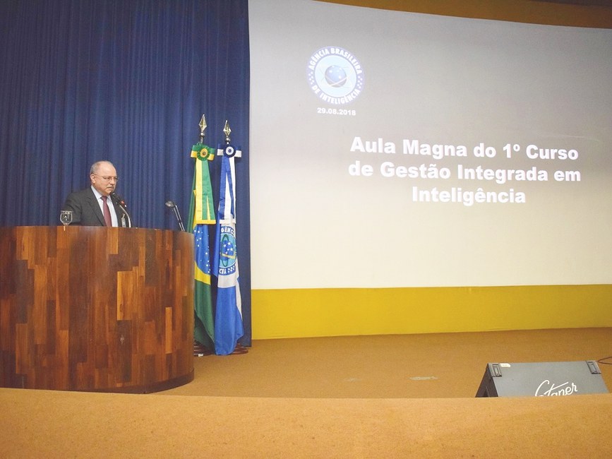 A Aula Magna do “Curso de Gestão Integrada de Inteligência” (CGII), primeira pós-graduação oferecida pela ABIN na história, contou com a participação dos ministros do Gabinete de Segurança Institucional (GSI), Sergio Etchegoyen; da Defesa, Joaquim Silva e Luna; e da Segurança Pública, Raul Jungmann; além do embaixador Alessandro Candeas – que representou o Ministério das Relações Exteriores (MRE).