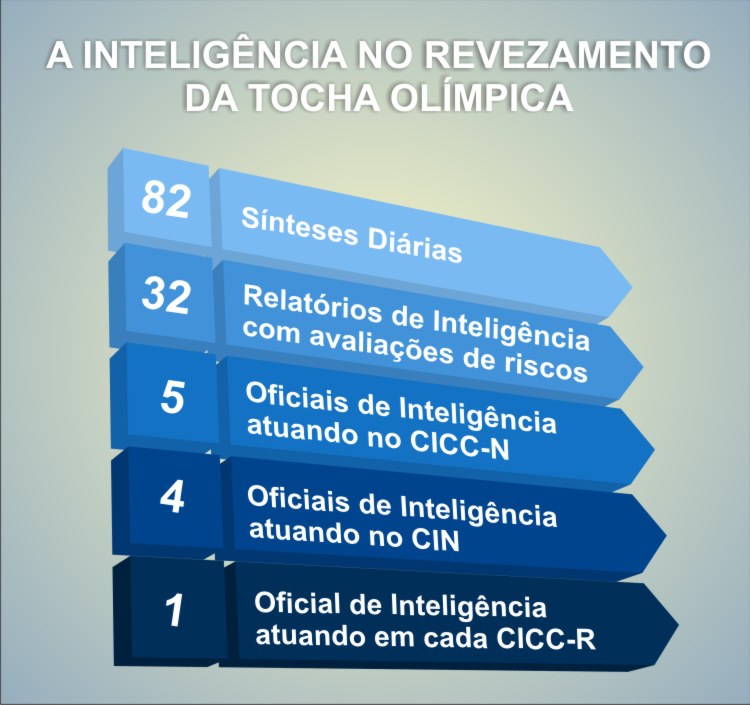 O trabalho começou antes mesmo da chegada da Tocha ao Brasil. O fogo olímpico desembarcou em Brasília no dia 3 de maio. As equipes de oficiais de Inteligência da ABIN começaram a atuar dez dias antes, em 24 de abril. “O trabalho preventivo da Inteligência tem importância fundamental ao antecipar ameaças ao trajeto da tocha”, comenta o diretor do Departamento de Integração do SISBIN (Disbin), da ABIN.