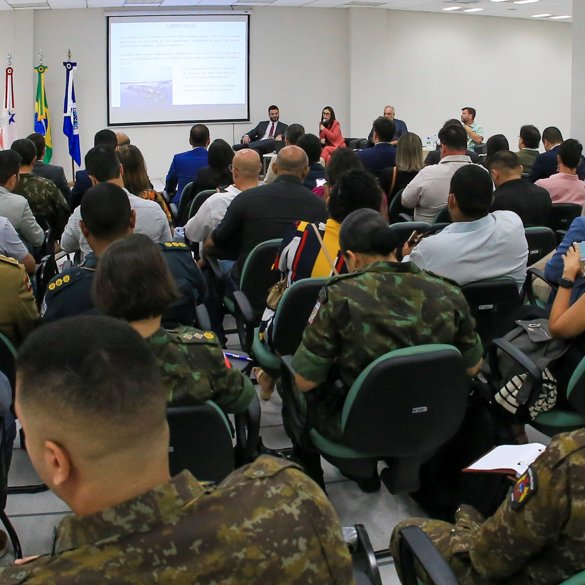 Os palestrantes do encontro do Sisbin Norte, representantes de todos os estados amazônicos, abordaram a atuação da atividade de Inteligência na antecipação de eventos relacionados ao combate ao desmatamento ilegal.