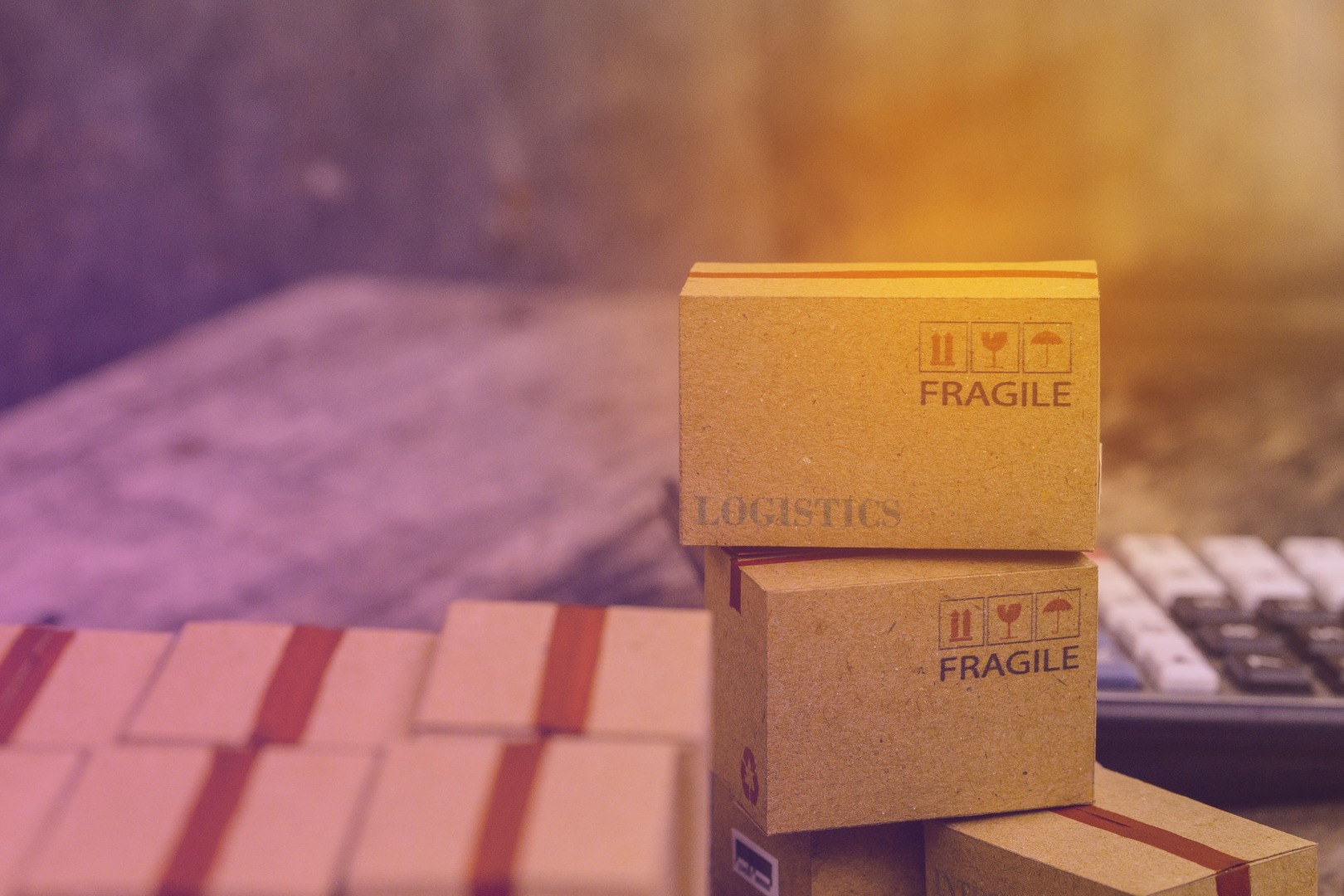 business concept: Pile of light brown small cardboard boxes. Concept of Shipping that can be done easily or purchase goods or services remotely. just using an online internet. transportation