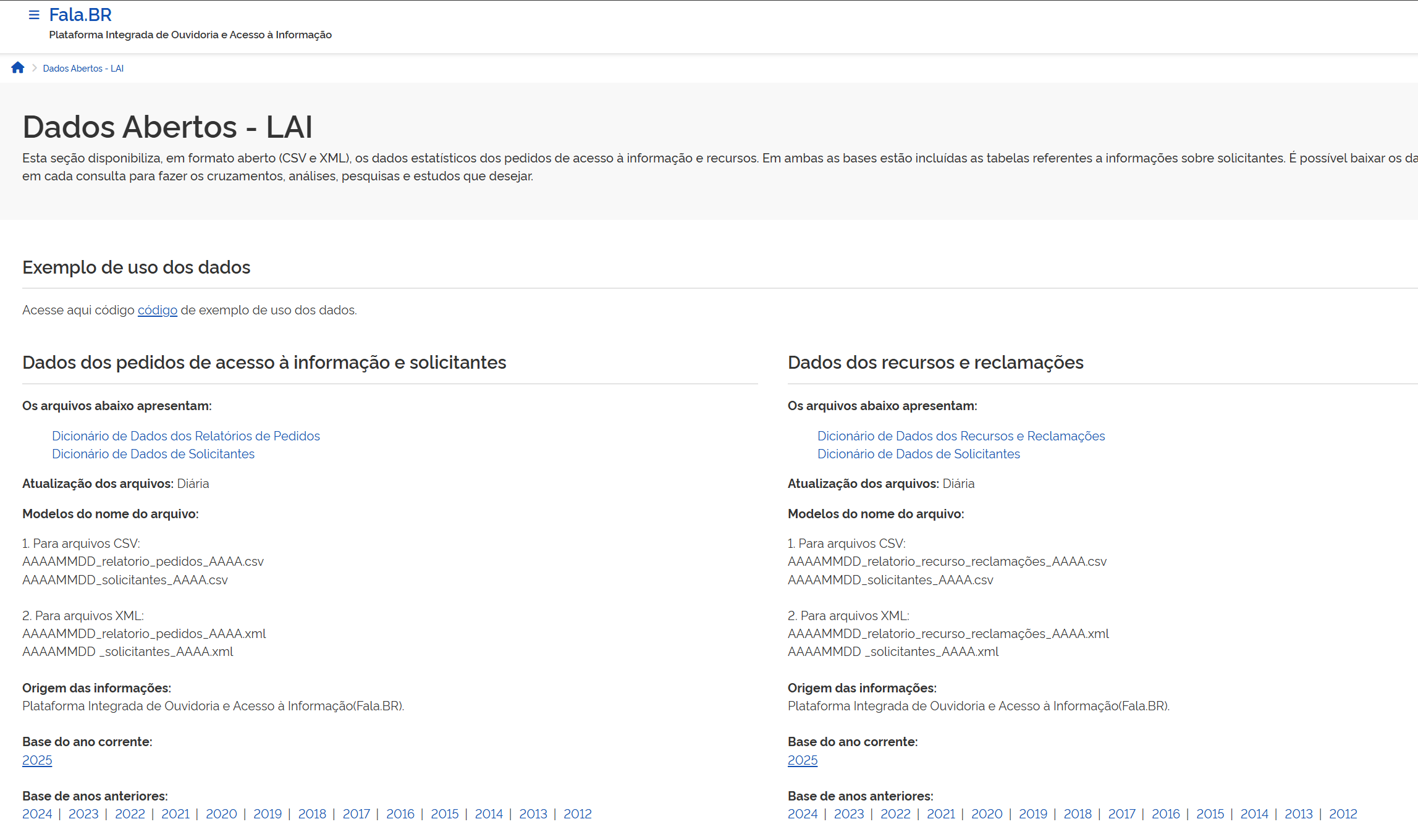 Dados abertos LAI 2025