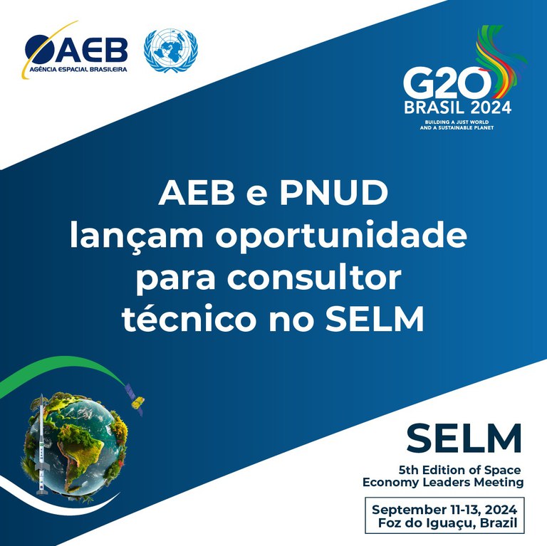 Em parceria com o Programa das Nações Unidas para o Desenvolvimento (PNUD), no âmbito do Projeto BRA/20/021, a Agência Espacial Brasileira (AEB) lança edital para seleção de consultoria técnica especializada, na modalidade pessoa física.