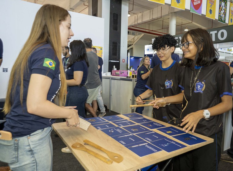 No estande da Agência Espacial Brasileira (AEB), os visitantes puderam mergulhar no mundo fascinante da exploração espacial, por meio das maquetes dos satélites e foguetes brasileiros, além de participar de atividades interativas e educacionais que estimularam o conhecimento científico e desafiaram a mente dos participantes.