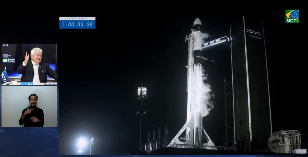 Na manhã da última sexta-feira (23), o presidente da Agência Espacial Brasileira (AEB), Carlos Moura, e o ministro da Ciência, Tecnologia e Inovações (MCTI), Marcos Pontes, comentaram a transmissão ao vivo do lançamento da