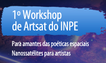 O I Workshop de Artsat no INPE começa dia 21 de setembro. Trata-se de um encontro virtual promovido pelo SACI-E Subjetividade, Arte e Ciência Espacial no INPE, em parceria com o CubeDesign & com suporte da pós-graduação em Engenharia e Tecnologias Espaciais do INPE MCTI.