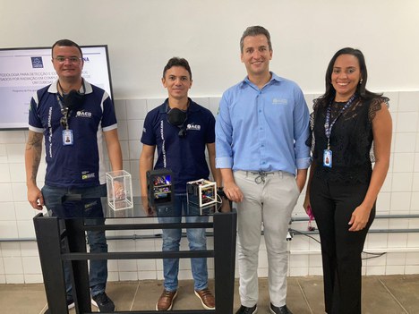 Equipe da Agência Espacial Brasileira (AEB) participou de apresentação de estudos de estudantes de mestrado e doutorado do Programa de Pós-graduação em Engenharia Aeroespacial e Elétrica da Universidade Federal do Maranhão (UFMA). Estavam presente o Diretor de Planejamento, Orçamento e Administração da AEB, Aluísio Camargo, a Coordenadora da Unidade Regional da AEB do Maranhão, Thaís Durans Abreu , além do ex-governador do Maranhão, José Reinaldo, e representantes da Agência de Inovação, Empreendedorismo, Pesquisa, Pós-graduação e Internacionalização da UFMA.