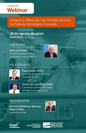 Finep/MCTI promove Webinar "Impacto e reflexo da crise mundial sanitária na Ciência, Tecnologia e Inovação” na sexta (28/8), às 10 da manhã