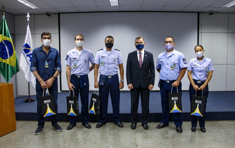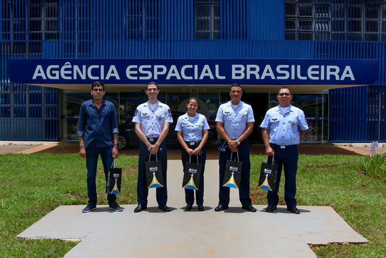 Militares e servidores civis do Centro de Lançamento da Barreira do Inferno (CLBI) participaram de uma visita institucional à sede da Agência Espacial Brasileira (AEB/MCTI), localizada em Brasília, nesta terça (09). A visita ocorreu com o objetivo de atualização do CLBI sobre desenvolvimento do Programa Espacial Brasileiro (PEB). Participaram da reunião o Tenente-Coronel Aviador Paulo Rodrigo Guirra Leite, a Primeiro-Tenente Engenheira Eletrônica Maria Alice Santos de Oliveira, o Primeiro-Sargento Hareton Ribeiro Gomes, o Segundo-Sargento José Marcos Leal Barbosa Filho e os servidor civil Francyval Gueses Soares. Da equipe da AEB, participaram o Coordenador de Satélites e Aplicações, Rodrigo Leonardi, o Diretor de Governança do Setor Espacial, Cristiano Trein, e o presidente, Carlos Moura.