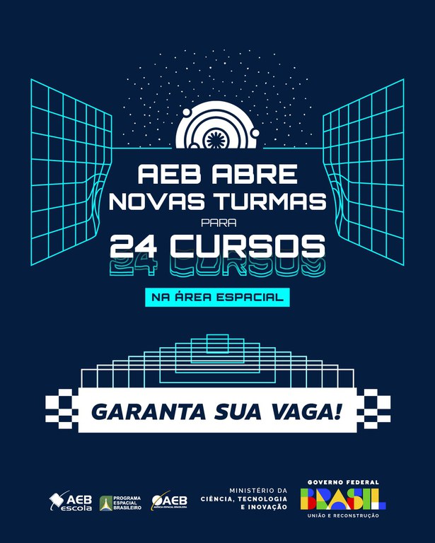 Nesta sexta (1º), a Agência Espacial Brasileira (AEB), por meio do Programa AEB Escola, abre novas turmas para 24 cursos, entre eles o de nanossatélites, foguetes, geopolítica aeroespacial, cientista cidadão e professor GLOBE. As aulas são gratuitas, online e assíncronas, realizadas por meio da Plataforma AEB Escola Virtual.