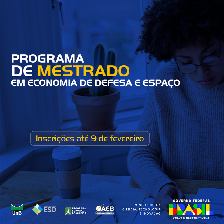 As inscrições para o processo seletivo do Mestrado Profissional do Programa de Pós-graduação em Economia se encerram nesta quinta-feira, 9 de fevereiro. O curso é fruto de uma parceria entre a Agência Espacial Brasileira (AEB), a Escola Superior de Defesa (ESD) e a Universidade de Brasília (UnB) e tem como principal área de concentração, a Economia da Defesa, com ênfase em pesquisas em Economia da Defesa e Economia Espacial.