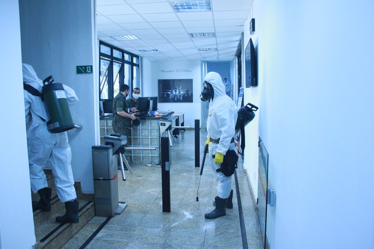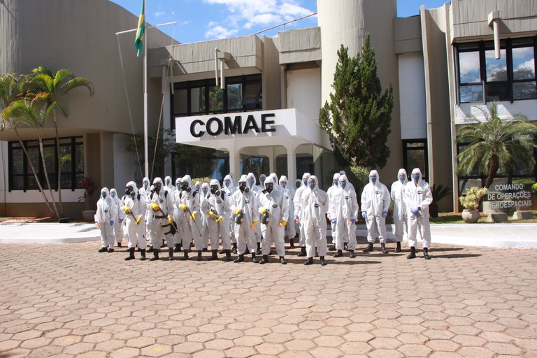 Militares da Companhia de Defesa Química Biológica, Radiológica e Nuclear (Cia DQBRN), sediada em Goiânia (GO), subordinada ao Comando de Operações Especiais (COpEsp), realizaram a desinfecção das instalações do Comando de Operações Aeroespaciais (COMAE), localizado em Brasília (DF), por intermédio do Comando Conjunto do Planalto. A ação ocorreu durante o dia 13 de agosto e teve duração de aproximadamente três horas.