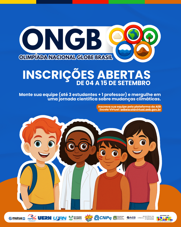 A 1ª Olimpíada Nacional GLOBE Brasil (ONGB) teve edital lançado em 4 de setembro e será realizada até 2 de dezembro de 2025. O evento, organizado pelo Programa GLOBE Brasil em parceria com a Agência Espacial Brasileira (AEB) e instituições de ensino e pesquisa, terá etapas remotas e presenciais.