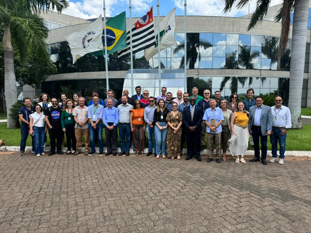 - Participantes do Workshop sobre Agricultura Espacial se reúnem para foto em frente a Embrapa Territorial, em Campinas/SP.