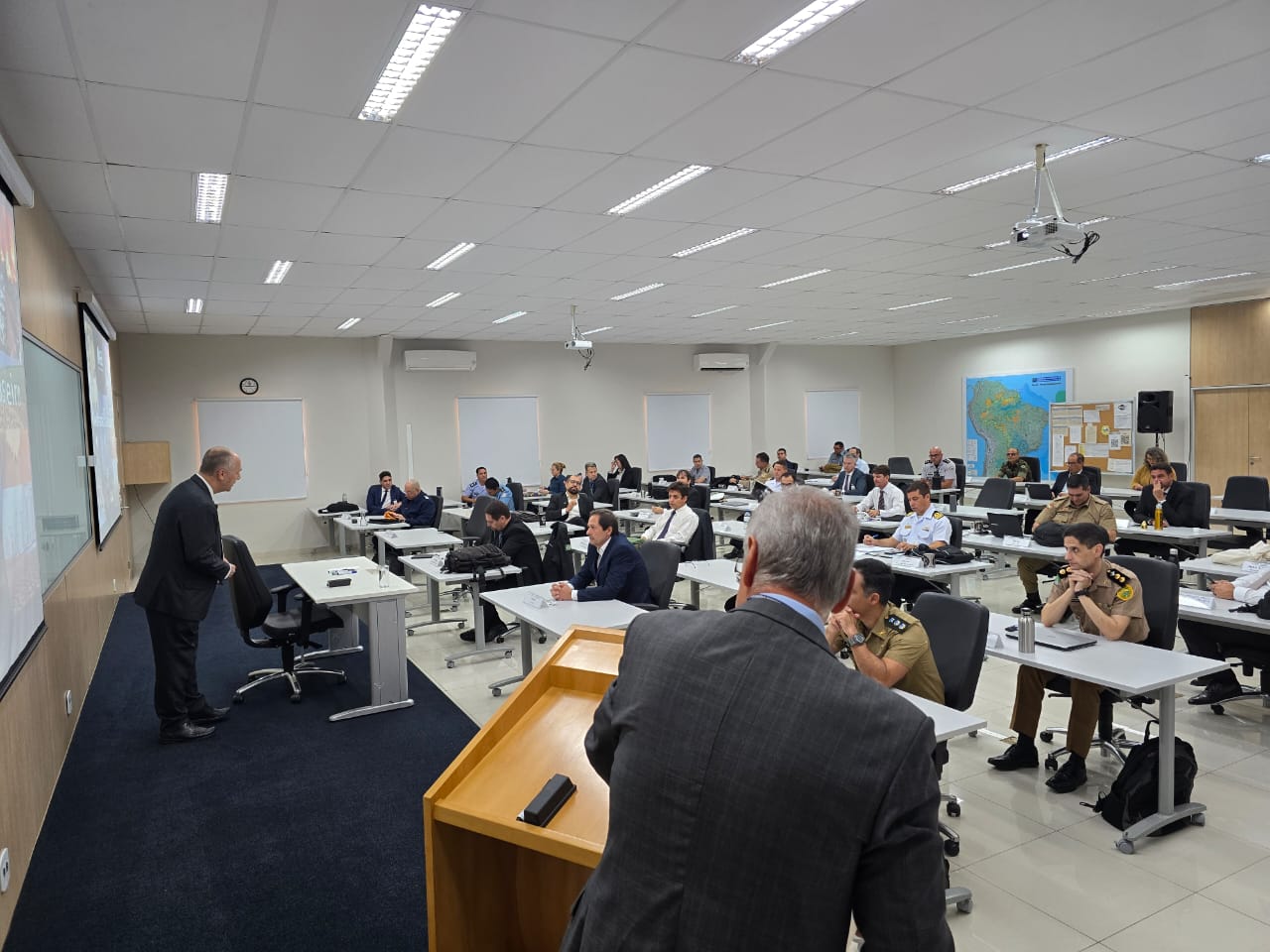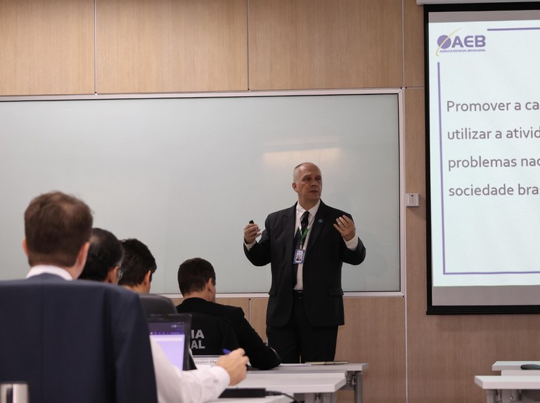 Na manhã desta quarta-feira, dia 19 de junho de 2024, os 42 alunos do Curso Superior de Inteligência Estratégica (CSIE), da Escola Superior de Defesa (ESD), assistiram à palestra do Presidente da Agência Espacial Brasileira (AEB), Marco Antonio Chamon, que discorreu sobre a AEB, com foco no Programa Espacial Brasileiro.