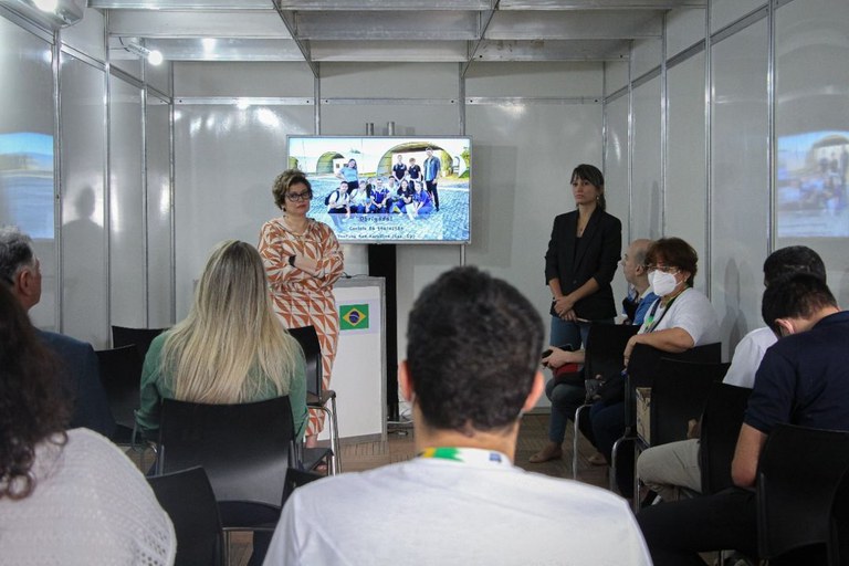 As palestrantes agradeceram o convite e explicaram sobre a importância de levar esse tema à sociedade. “É um prazer enorme participar desse evento da SBPC para falar de um assunto que tem tudo a ver com a proposta da AEB, que são projetos educacionais que serão desenvolvidos juntamente com o PNUD”, comemorou Valentina Scott.