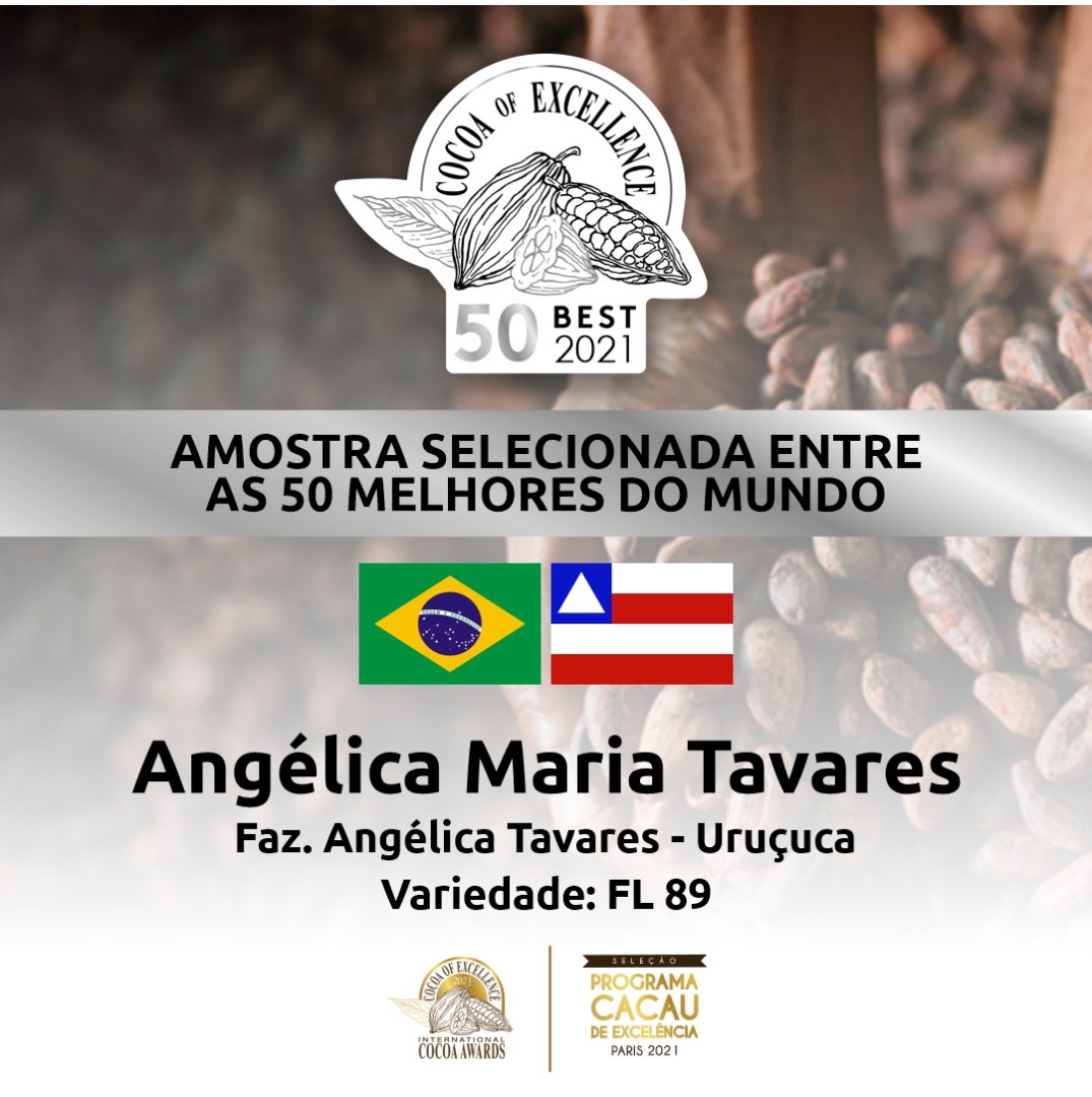 Das oito amostras que representavam o Brasil no Prêmio Internacional do Cacau - ICA, três foram selecionadas entre as 50 melhores do mundo para a grande final. São elas: