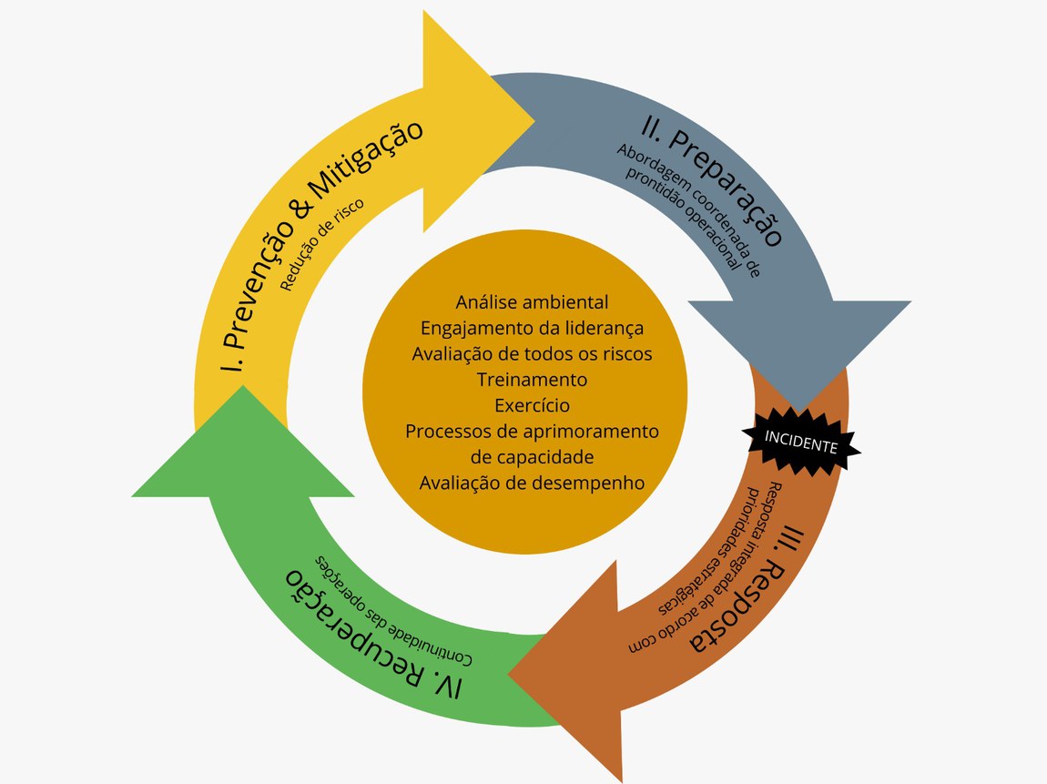 PREVENÇÃO E MITIGAÇÃO; PREPARAÇÃO; RESPOSTA; RECUPERAÇÃO