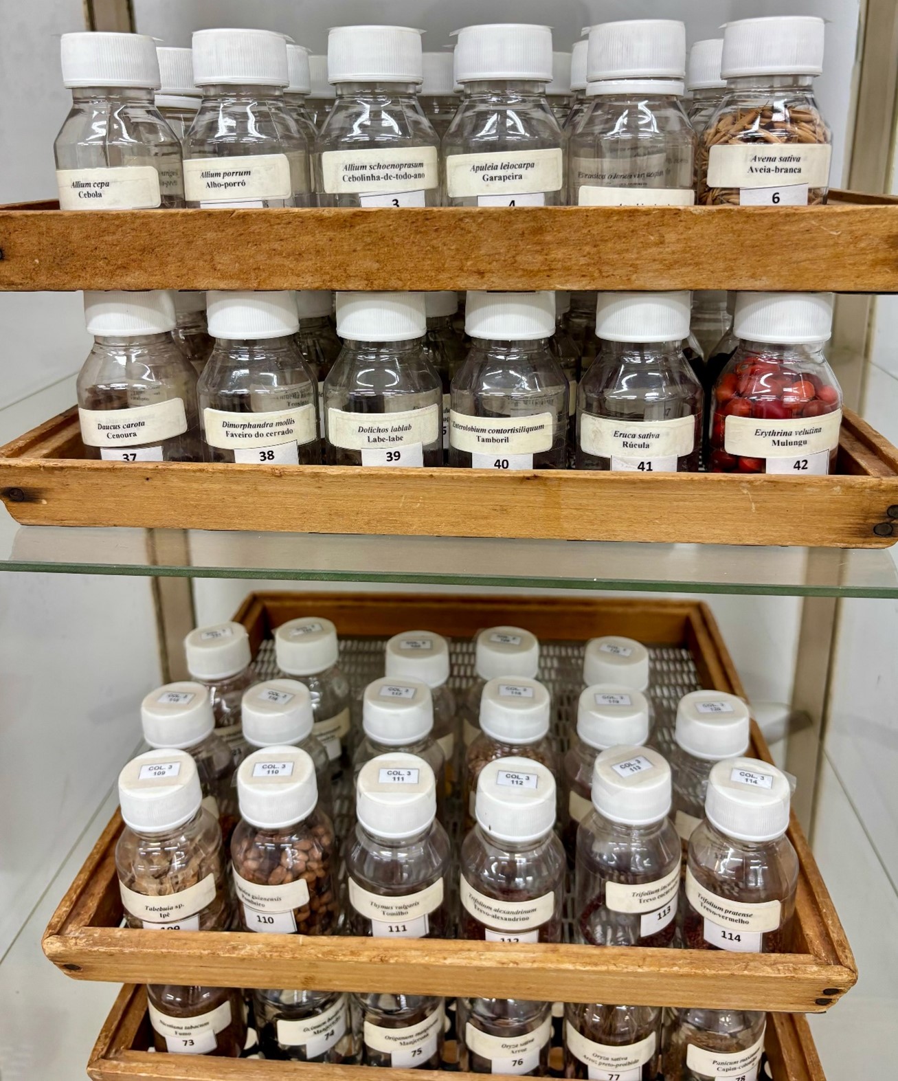 Após a verificação e catalogação, normalmente as sementes são colocadas em frasco transparente com tampa, previamente lavados com água, sabão e secos antes de guardar as sementes. Os frascos devem ser etiquetados com as informações suficientes para sua coleta e rastreabilidade. É altamente recomendado que seja colocado dentro do frasco junto com as sementes, pelo menos um botão seco de cravo da índia, para auxiliar na preservação. Os cravos devem ser substituídos a cada revisão periódica da sementoteca ou quando o laboratório julgar necessário.
