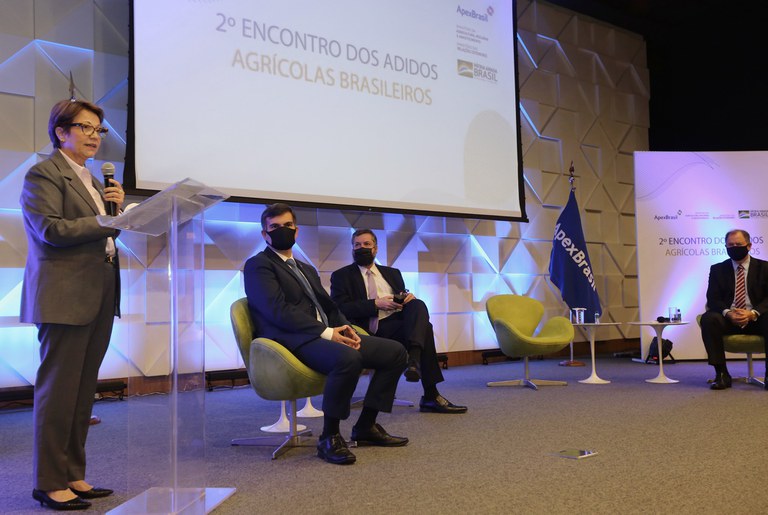 Tereza Cristina anunciou ainda três novos adidos agrícolas a partir deste ano, que ficarão estabelecidos na França (Paris), na Alemanha (Berlim) e na Austrália (Camberra). Os países foram escolhidos por sediarem a Organização Mundial da Saúde Animal e a Organização para a Cooperação e Desenvolvimento Econômico, para ampliar a comunicação do agro brasileiro na Europa e por serem importantes players no mercado agrícola mundial.