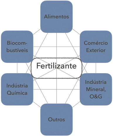 A cadeia de fertilizantes é de alta complexidade, interagindo com o setor de produção de alimentos, de energia, com as indústrias química, de mineração, de óleo e gás, além do comércio exterior.