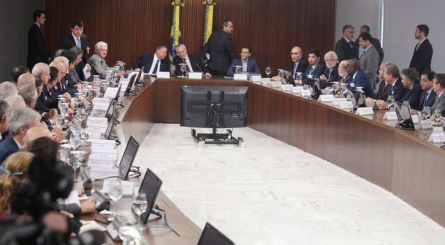 O presidente Temer e o ministro Blairo Maggi em reunião com embaixadores