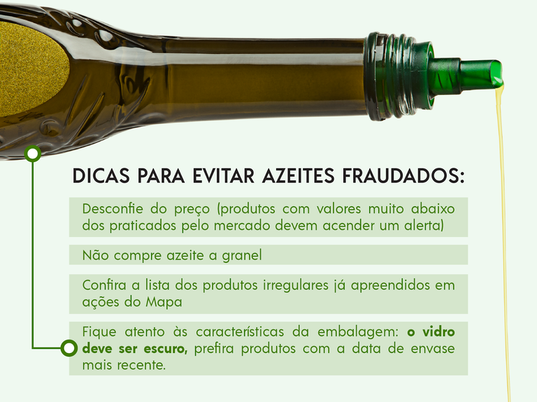 Uma ação do Ministério da Agricultura, Pecuária e Abastecimento (Mapa) realizada nesta semana flagrou a venda de óleo composto como azeite de oliva. O óleo composto é a mistura de óleo de soja com outros óleos vegetais, que deve ser claramente informada no rótulo para que o consumidor não seja enganado na hora da compra.
