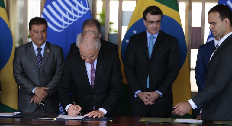 O governo brasileiro firmou memorando de entendimento com Organização Mundial da Propriedade Intelectual (OMPI), nesta quinta-feira (17), em cerimônia no Palácio do Itamaraty. O secretário-executivo, Marcos Montes, assinou o memorando por parte do Mapa. A cerimônia contou com a participação do diretor-geral da Organização Mundial da Propriedade Intelectual (OMPI), Daren Tang, em agenda oficial no país.