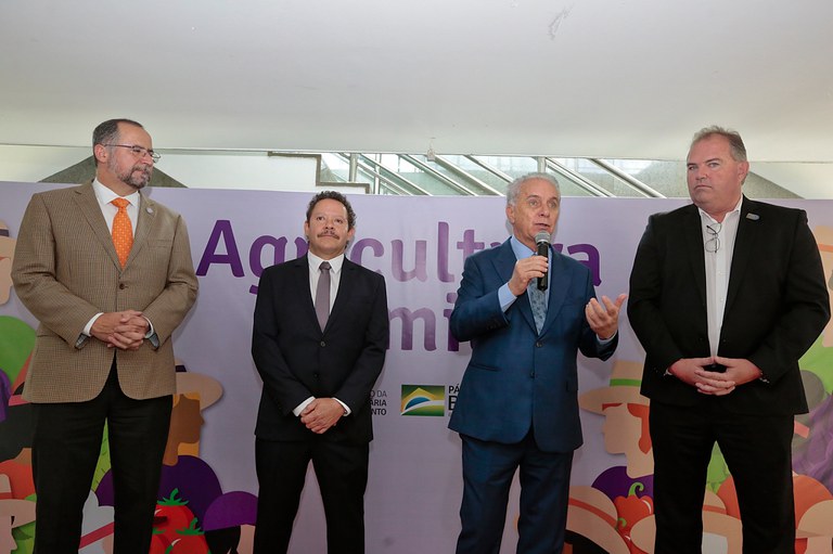 O ministro Marcos Montes destacou a inclusão da agricultura familiar na estrutura do Mapa. "A agricultura familiar deve valorizar o produtor, mostrando e dando a eles dignidade, com crédito rural, titulação, selos. É uma alegria e satisfação ver como a agricultura familiar foi valorizada nos últimos anos".