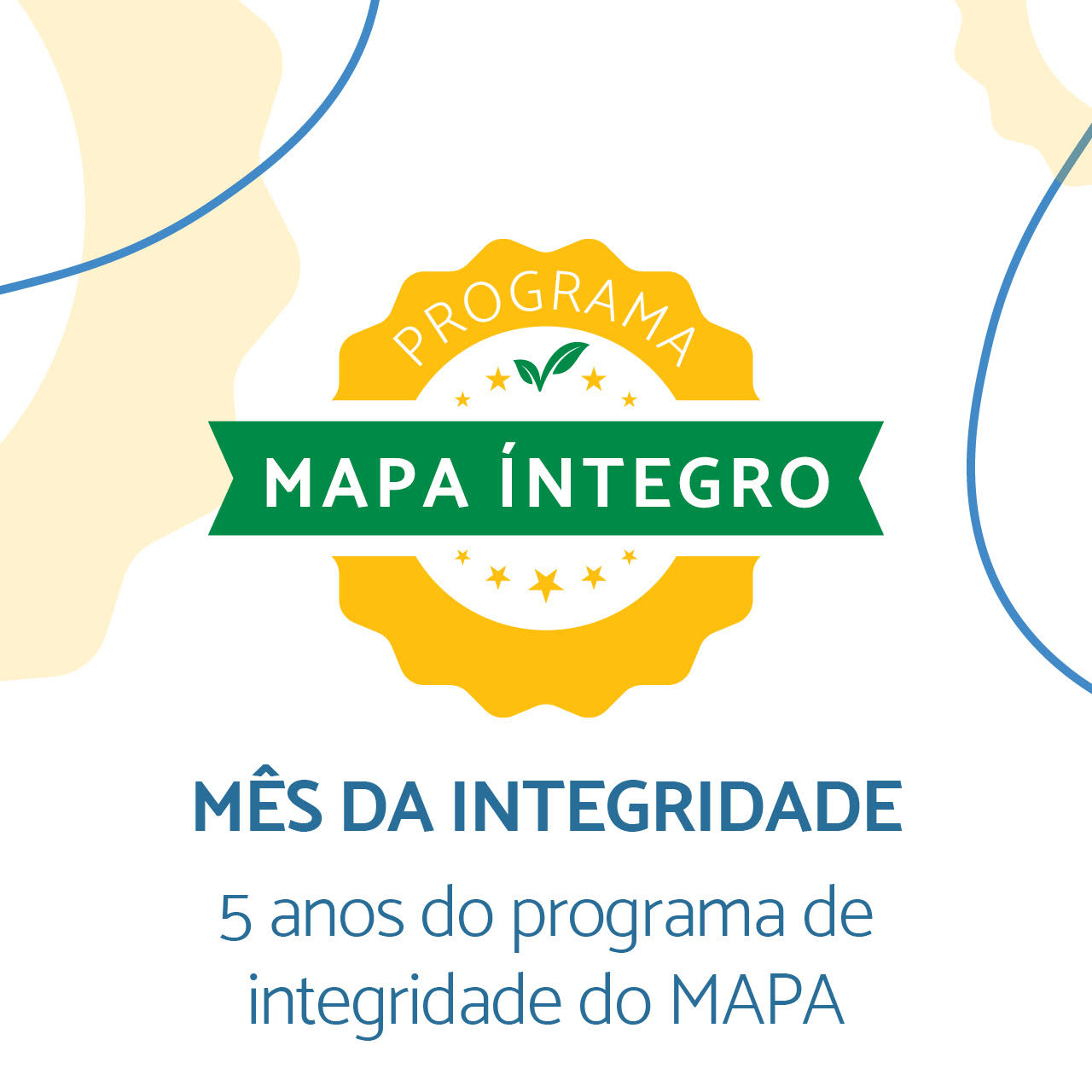 Em comemoração aos cinco anos do Programa Mapa Íntegro, o Ministério da Agricultura, Pecuária e Abastecimento realiza diversas atividades para promover a governança no setor. Ao longo do mês de abril, serão realizadas lives pelo canal da Enagro no Youtube, além de ações presenciais na sede do Mapa.