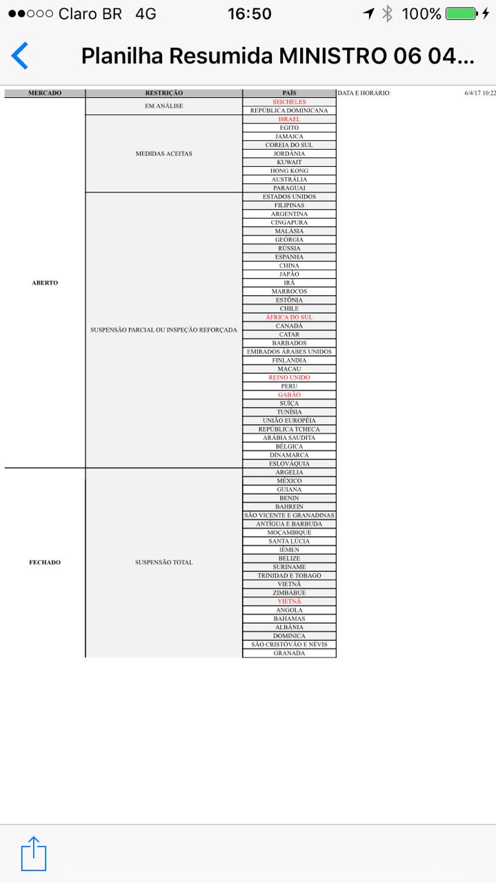Quadro atualizado com situação dos mercados compradores