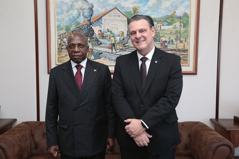 O ministro da Agricultura e Pecuária, Carlos Fávaro, recebeu nessa quarta-feira (5) o Ministro das Relações Exteriores de Angola, Tete Antonio e comitiva. Durante a reunião, os ministros reforçaram a importância do diálogo entre os países, que são parceiros comerciais.