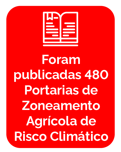 Em 2023, foi concluído o desenvolvimento da metodologia para o Programa Nacional de Zoneamento Agrícola de Risco Climático (Zarc) da produção forrageira para pecuária de corte. Ao longo do ano de 2023, foram publicadas 480 Portarias de Zoneamento Agrícola de Risco Climático. Os resultados são evidências do constante processo de modernização e atualização dos estudos do Zarc, com indicativos de riscos cada vez mais ajustados à realidade climática do Brasil.No tocante as operações de apoio à comercialização, o Governo Federal, assegurou no ano de 2023 a subvenção econômica para garantir os preços mínimos aos produtores de borracha natural e trigo com aporte de R$ 520 milhões.
