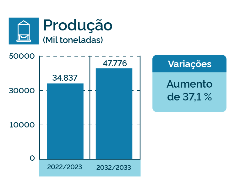 Os números fazem parte do estudo Projeções do Agronegócio , Brasil 2022/23 a 2032/33 , elaborado pela Secretaria de Política Agrícola do Ministério da Agricultura e Pecuária (Mapa) e pela Empresa Brasileira de Pesquisa Agropecuária (Embrapa).