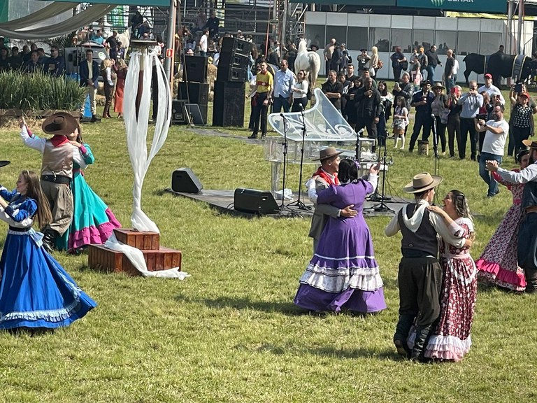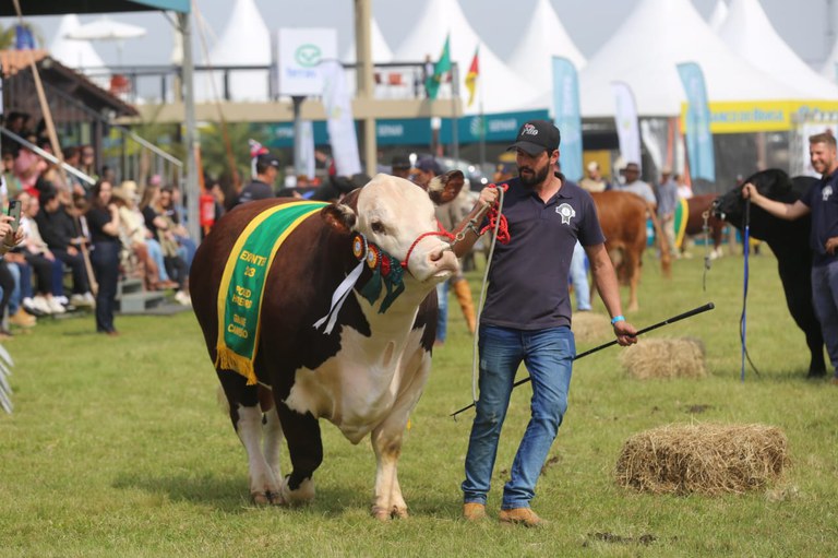 “Depois de passar por três graves crises climáticas, mesmo depois de uma crise internacional de preço de commodities achatado, crise do leite, das carnes, crise dos grãos, mesmo assim a Expointer consegue ser a maior feira do Brasil, a mais bela feira da América Latina, mostrando a força do povo gaúcho”, salienta o ministro.
