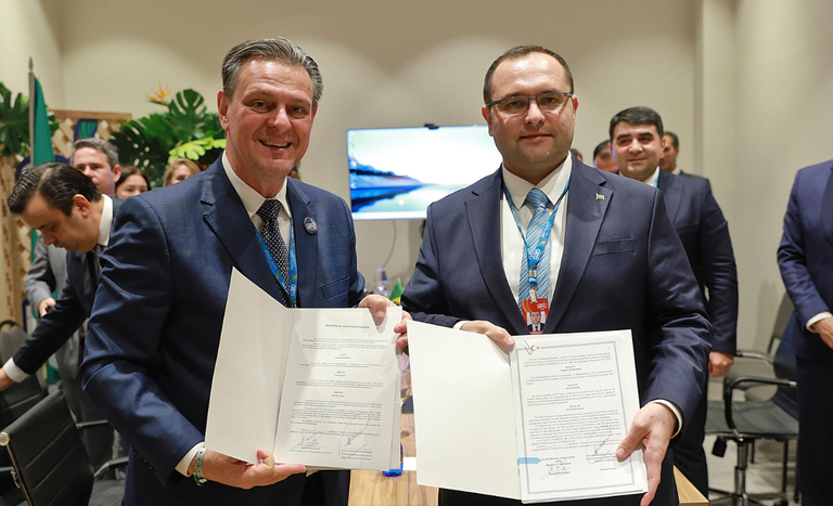 Os ministros da Agricultura do Brasil e do Azerbaijão, Carlos Fávaro e Magnum Mammadov, respectivamente, assinaram Memorando de Entendimento para a cooperação em pecuária e saúde animal nesta sexta-feira (13), durante uma reunião bilateral no G20 Agro.