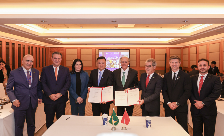 Nesta quarta-feira (5), o vice-presidente e ministro do Desenvolvimento, Indústria, Comércio e Serviços (MDIC), Geraldo Alckmin, assinou memorandos de entendimento para a promoção do café brasileiro na maior rede de cafeterias da China, a Luckin Coffee. O documento também determina a criação de um hub de inovação brasileira em Xangai. As duas iniciativas foram pela Agência Brasileira de Promoção à Exportação (ApexBrasil).