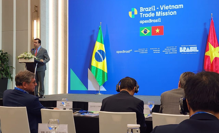 Outra ação importante com os vietnamitas ocorreu durante o Seminário Comercial Brasil-Vietnã em Hanói, considerado a maior iniciativa de promoção comercial já realizada pelo Brasil naquele país. O evento, promovido em parceria com a Apex e o Ministério das Relações Exteriores, reuniu mais de 150 empresários brasileiros e vietnamitas e contou com a presença do vice-ministro da Agricultura do Vietnã, Phung Duc Tien, que destacou o potencial para o aumento da cooperação e do comércio entre os países.